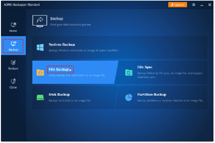 AOMEI Backupper is a reliable and free backup software that helps you back up all your files and folders, hard drives and system partitions. It also comes with many advanced features to keep your Windows system and data safe. Even if you are a user that use this software for first time, or you are a tech newbie, you can easily operate this AOMEI Backupper without any hassle. Its main options are “Backup”, “Clone”, “Restore” and “Utilities”. It can help you to back up all your data and allow you to recover all your important files and data even if data loss occurs due to an emergency such as a system crash. All the process is also extremely easy and fast.